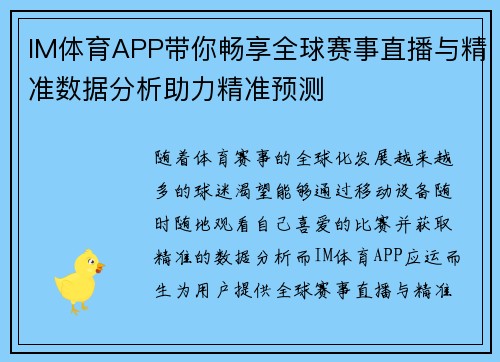 IM体育APP带你畅享全球赛事直播与精准数据分析助力精准预测